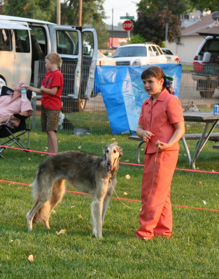 | Natalya and Francesca are becoming quite the team! At the Canyon County Fair in 27 July 07 they were Jr Grand Champion, showmanship, and went on to take Grand Champion overall (30 kids). They also took Reserve Champion in obedience. At Western Idaho Fair in Boise on 17 August 07 they took Grand Champion Jr Showman and also won the dog judging contest! |